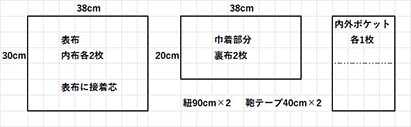 ポケットの大きさは結構適当だけど20cm×30cmに裁断して半分に折って裏返して付けた