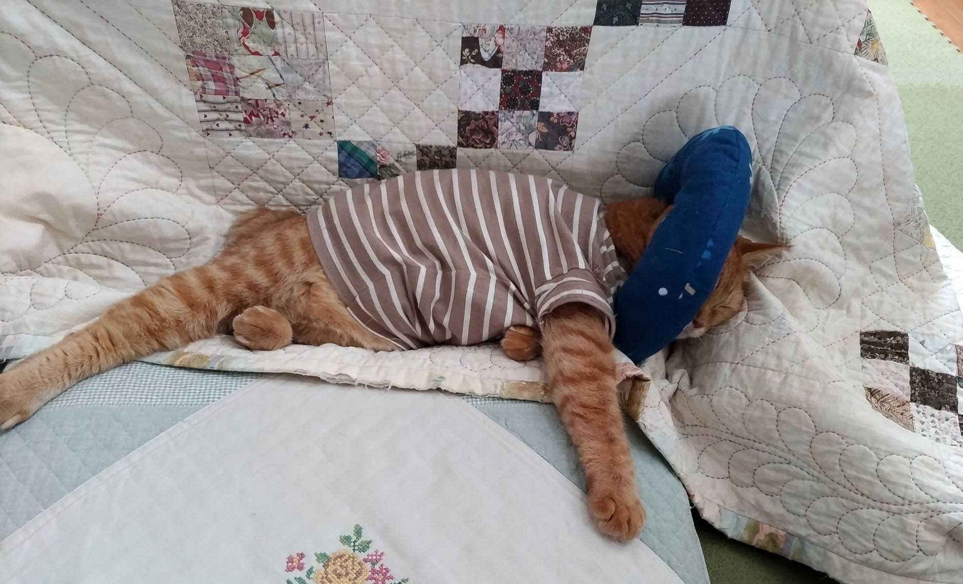 おこたと座布団の窪みにすっぽり入っている空ちゃん