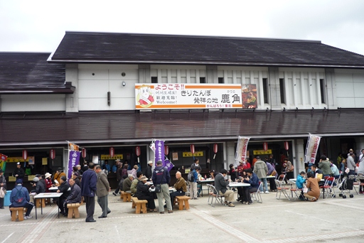 カナケンです。「きりたんぽ」という言葉の由来には 次のような逸話が残されている。ある時,花輪(現・鹿角市)に南部藩の殿様が直々に巡視にやってきた。その時に藩主に出された料理が,山に住む木こりやマタギたちの料理。木こり達は ご飯が腐りやすいため、木の棒にご飯をつぶしてつけて焼き,これを山でキジや野菜を煮詰めた鍋に入れて食べていた。これを藩主に差し上げたところ,藩主は大変お喜びになり,「これはなんと言う料理か」と聞いたが,正式な名前などない料理のことゆえ,とっさに思いついたのが 槍の稽古に使う短穂槍の形に似ているので,「これは“たんぽ”です」と答えたという。これがきっかけで〔きりたんぽ〕と言われるようになったといわれるそうですよ!!そんなきりたんぽ発祥の地鹿角にて昨日、今日開催された「きりたんぽ発祥まつり2012」桃豚でお馴染みの当グループの「まんまランド」からは「桃豚ぶたんぽ」と「桃豚肉だまっこかやき」の出店です。会場では香ばしい味噌漬けたんぽの匂いや出汁の効いた良い匂いがきりたんぽちゃん塗り絵コーナーやクイズ、味噌付けたんぽ手作り体験といった参加型のイベントも開催されお子様から年配の方まで幅広い年代が楽しめるイベントでした。メインイベントのT(たんぽ)1(ワン)グランプリも開催され、各店創作たんぽや昔ながらの味噌漬けたんぽ、きりたんぽ等発祥の地に相応しいイベントで各店で商品を購入毎に抽選券付き投票券がもらえるので、その投票券を抽選会場に設置された投票箱に投票後、いざカナケンも抽選結果は・・・「十和田八幡平観光協会ポケットティッシュ」子供を連れて来てたカナケンには調度良い商品でした鹿角特産や宿泊券などの豪華賞品が当たる抽選会だけあって皆さん美味しいたんぽを食べて抽選にチャレンジしている姿が目立ちました。開催中まんまランドの「桃豚ぶたんぽ」と「桃豚肉だまっこかやき」をお買い上げ、投票していただきました皆様、本当にありがとうございました。ランキングに参加しております!良かったらクリック!!をお願い致します!!!にほんブログ村にほんブログ村にほんブログ村
