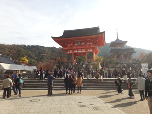 桃豚1号です!大阪から、いよいよ京都へと移動着いた先は世界遺産「清水寺」入り口の重要文化財「仁王門」をくぐり、こちらも重要文化財「三重塔」そして、いよいよ本堂へ!清水の舞台から山側の紅葉もグット!本堂前にはお坊さんが2人… 間違えました!一緒に行った仲間でした(南~無~)よくテレビなどで見る景色に感動清水の舞台を下から見ようと階段を下りてみる… う~ん、何だか京都っぽい!(実際、京都へ来てるんですけどね…)この舞台は4階建てのビルの高さに相当するのだとか!しかも釘を一本も使わず、組まれているから驚きです!!修学旅行でも訪れていたハズでしたが改めて見ると昔の人たちの宗教信仰の深さと技術力には驚きます。クレーン車などの重機がない時代にこのような大きな建物を建てるのですから!口をぽか~んと空けて清水の舞台を見上げる1号なのでした!ランキングに参加しております!良かったらクリック!!をお願い致します!!!にほんブログ村にほんブログ村にほんブログ村