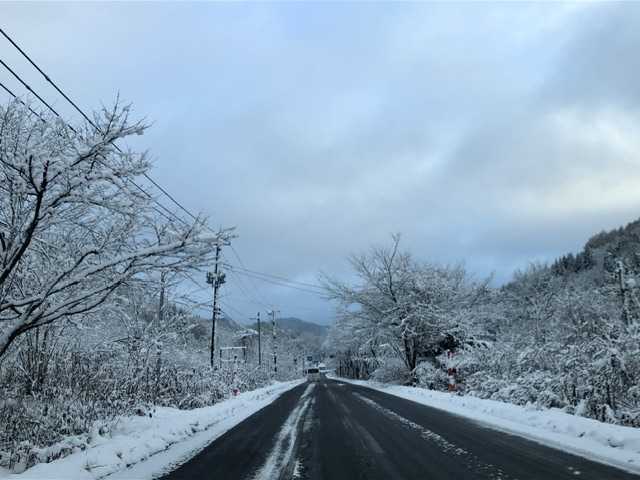 桃豚1号です。今朝の十和田湖に通じる県道外気温はマイナス2℃🥶雪道は時間に余裕を持って安全運転で行きましょうね🚚💨