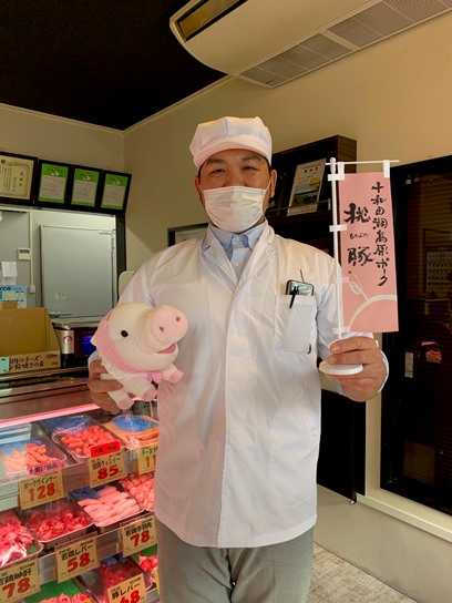 「いつも美味しい桃豚をありがとうございます。大事に育ててもらった桃豚を丁寧に販売していきたいと思います。これからも宜しくお願い致します」 と​