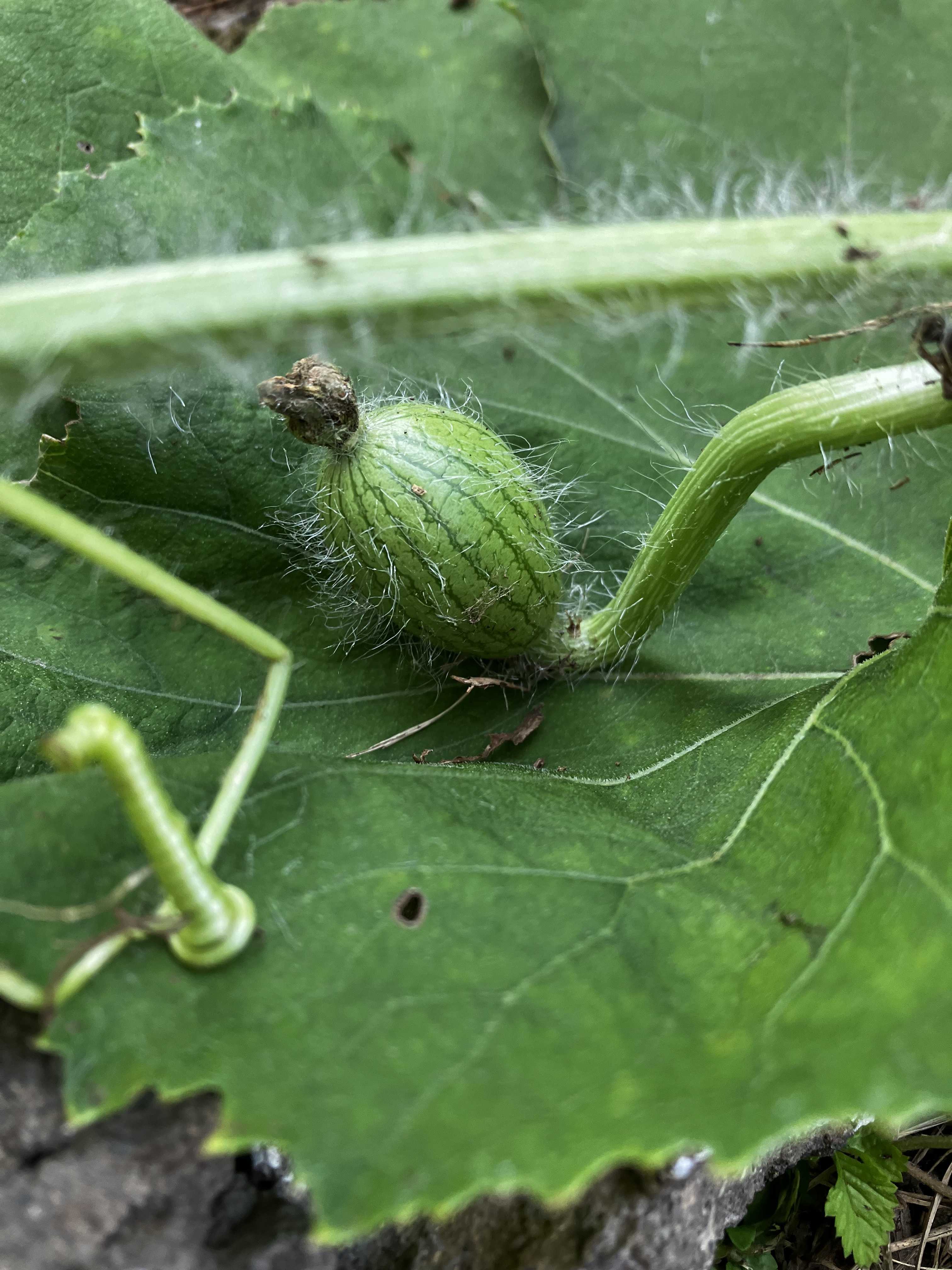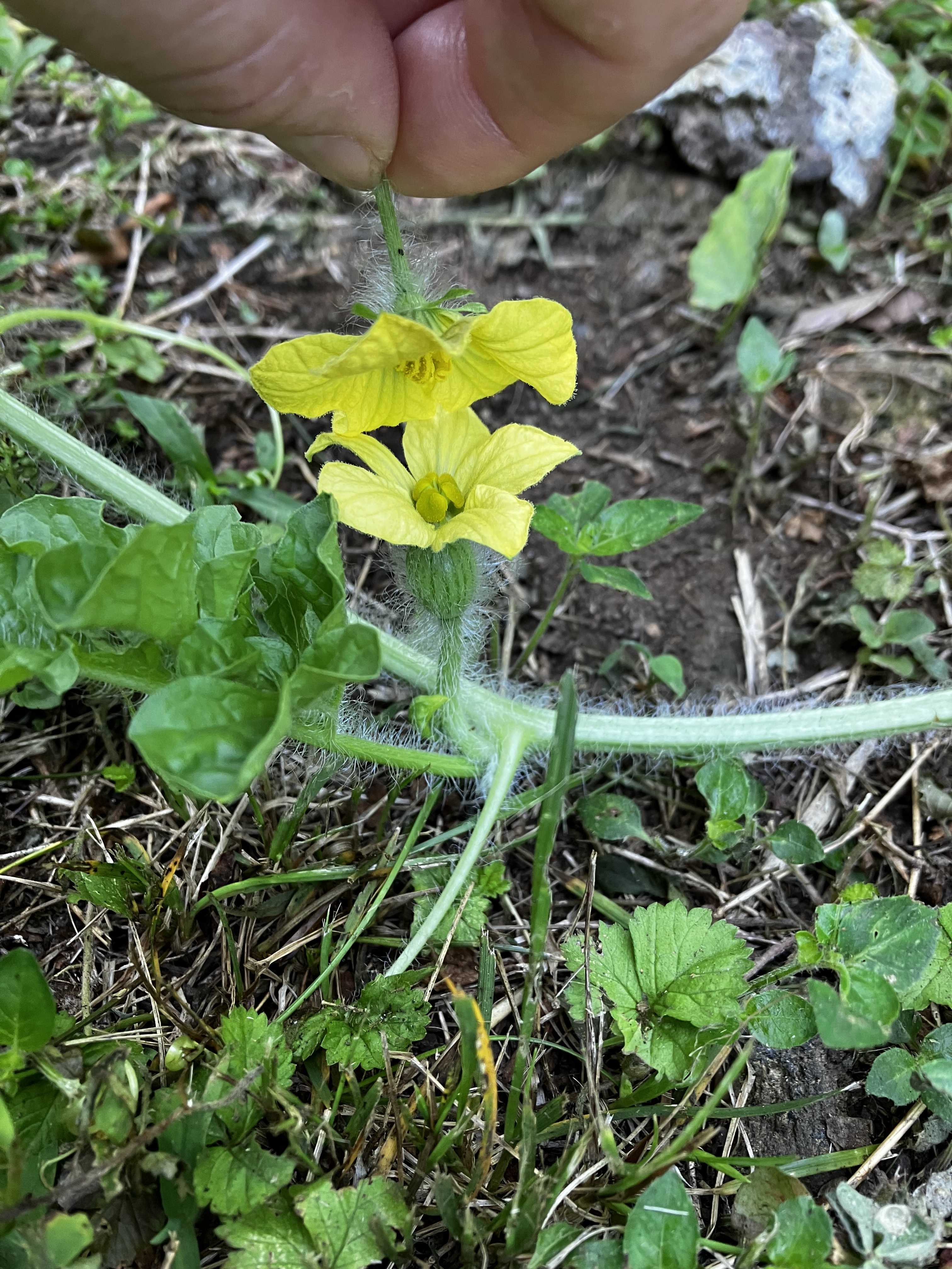雄花と受粉させます(花は毎日咲きますが、ほとんどが雄花。雌花を見つけた時の感動 w)