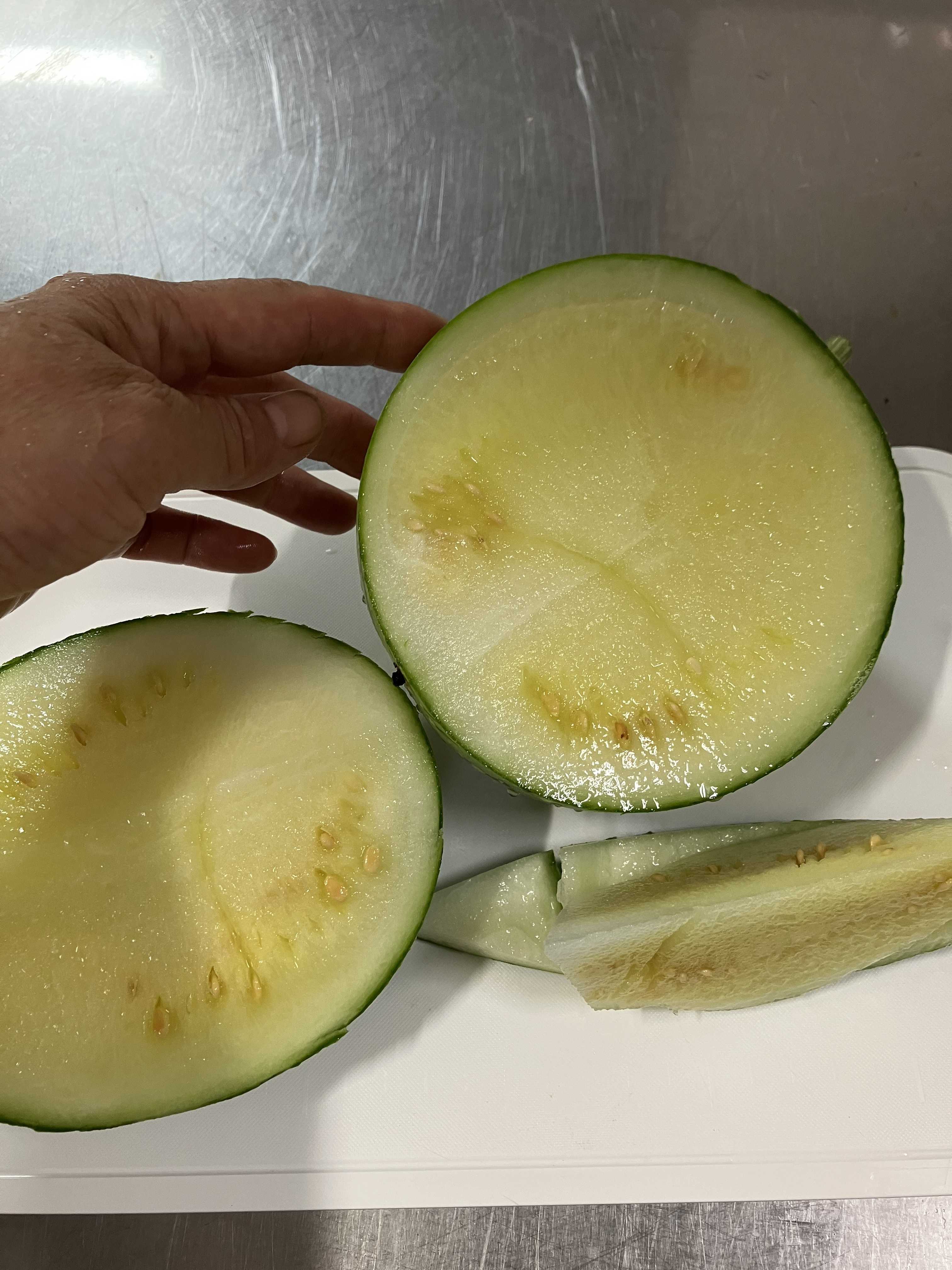 収穫した成長途中だったスイカは スイカの香りはするが甘味が無い。