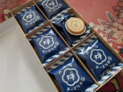 大阪のお友達のお土産、ウメダチーズラボのクッキー♪最初、常温でそのまま食べちゃって、いやいや、これは冷えてる方が良いかと冷蔵庫へ。ホワイトチョコレートをチーズクリームとチーズクッキーでサンドしたもの。クリームにもクッキーにもチーズだから小ぶりなサイズなわりにチーズが濃くて美味しかった♪♪自由が丘に店舗があったけど閉店したみたい。今は関西でしか買えない。