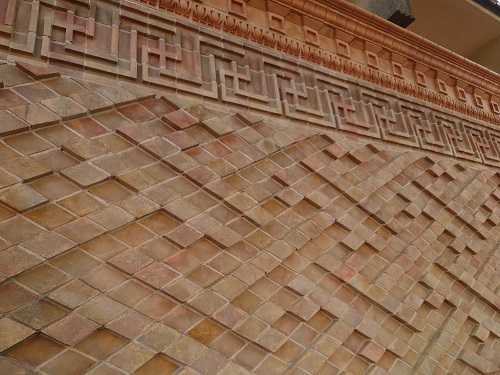 英国IBSTOCK社にデザインを依頼、73種類、140万ピース、3500tの煉瓦が使われている。