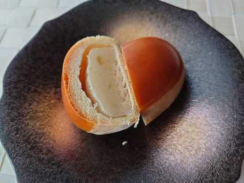 皮はしっとりとまでは行かないけれどパサパサ感はなく、白餡に刻み栗入り♪