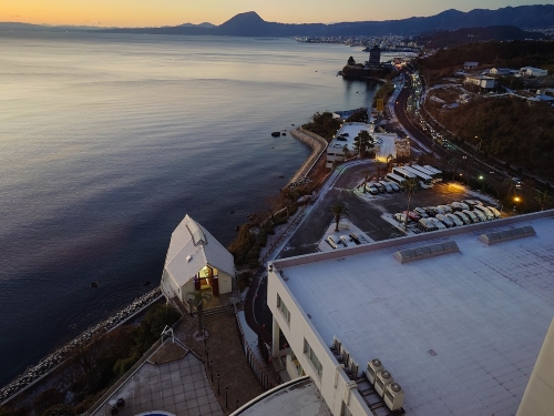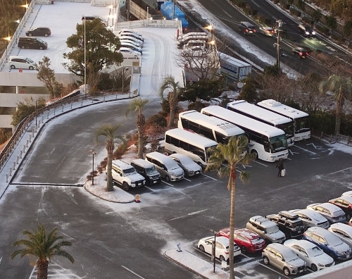 でもここは別府、うっすら積もっただけでも高速道路は通行止め・・・。