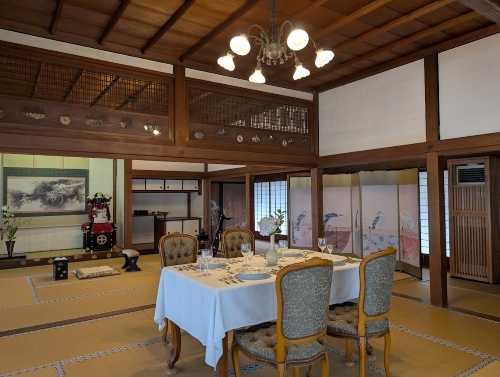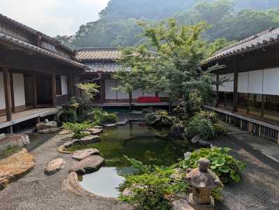 陶器でできてる感じがしたけど・・。中庭の池では金魚が涼し気に泳いでいた。明治17年に改築された謁見の間。逆さ獅子の乗った山灯篭も明治17年だったから大規模改修だったのか。