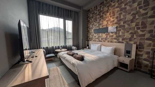 ベッドの上にあるのは温泉に行く為のバッグ。