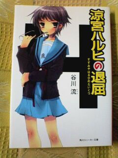 最近はっちゃけてませんでしたね。夏休みに突入したのでなにかクオリティを発揮しようかなと考えました。三銃士の一人でもありますから。なんかね、これ紹介すると一部の人から猛烈な意見が来ると思うんですけどそこはいいです。もう堕ちるとこまで堕ちましたから。今日は晴れでしたので本屋にGO。さて・・・そこで購入したものは・・・ 「涼宮ハルヒの退屈」ですよ。本の内容は知ってる人は知っている。なぜか話題沸騰。で、これぶっちゃけ第3巻なわけですよ。ってことは・・・・言わずもがな。憂鬱も溜息もありますよ!ええ! まだ読んでいないので後で読もうかな。 今日の単語「退屈」dull (形)明るくない、とがっていない、やる気の無いboring (形)うんざりさせる