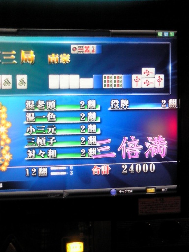 趣味ってものは自分で「もうこれ以上はやめておこう」とおもっていてもなかなか止まらないものです。なんだこの役たちはw信じられないかもしれませんがロン和了りです。下家wwちなみに写っていないもう一組の刻子は北なんですが、序盤からすでに暗刻で、対面が捨ててたんです。これを明槓していれば四槓子だった…かも。これがあるから麻雀はやめられんね。でも金が…そろそろ控えます。今日は母の日でしたね。今年は食べ物じゃなくて普通にカーネーション贈りました。赤、ピンク、オレンジの3色。これでリビングにも彩りが増えたってもんです。明日は普通の授業ですね。電子情報のときになんかやるものもっていかなくちゃ