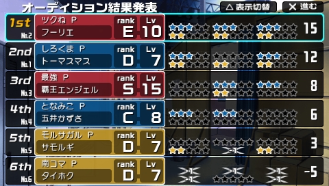 昨日書こうと思っていた番外編ですが、予想外の出来事が起こりましてかけませんでした。そのことってのは食あたりなんですけどね。部活行く前に金○駅中のたこ焼き屋で○幡駅で食うための昼飯を調達したんですよ。で、初め一口食べたときになんか違和感を感じたんですが、たこ焼きは好きなのですぐに8個全部食べてしまいました。通学路歩いててなんかふらふらするし足が重いなぁ、と思ったのもつかの間、部室入ってすぐに吐き気が来ました。座っていればそのうち治るかなと思っていたんですが悪化するばかりで...先輩たち来てたのにろくに会話もできませんでしたね。その後トイレに駆け込んだけどもやっぱり状況は変わらず。結局先生に頼んで保健室。そのまま病院に行って来ました。点滴&リバースでだいぶ楽になりましたけど現在も併発した過呼吸の影響で足がしびれてます。 何しに学校に行ったのかわかりませんね。ほんと。夏のたこ焼きには注意しましょう。--------------------------------------------------------------- 番外編ここから外人が若干引いていた bySREでおなじみのアイマスSP。PSPに移植されて外に持ち歩けるようになりましたが持ち歩いてプレイするとやっぱり変な目で見られるのでDS移植はやっぱり不発かなぁと思ったりします。HD万歳60fps万歳。で、天海春香ことフーリエが旅行前日にもかかわらず「約束ですよ、約束っ!」と念を押されたので 、東京、仙台と出張コンサートをすることになりました。そしてめでたく62週のグランドフィナーレを迎えたわけですがその結果が満点ですよ、満点っ!正直また93点かと思ってた。びっくりした。俺が嬌声をあげたせいでSREもびっくりしてた。何がよかったのかねぇ...やっぱ営業の数かな。それにしても営業のパフェを未だに要求してこないのはなぜだろう。教えてエロい人。 あ、一昨日作った初音ミクのDear cocoa girlsのステマニ譜面上げときますね。後で研究室のほうにも。例によってPVつき。モジュールはもちろん。。。追記:いまさらながらgirlsのスペルミスってる。このまま晒しておくかw