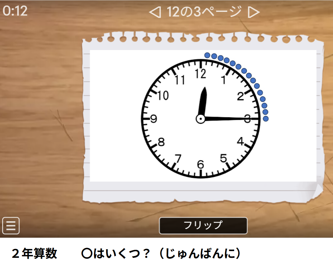 使ってくれる人がいると教材作成意欲がわきます。小学生の孫と来年小学校に入学する孫がいます。家に来たとき、パソコンをするのが楽しみなようです。 5、10,15、20と数字が増えていくのがイメージできるように作成したのが、下記の作品です。これは、時計の長針を読む練習にもなると思います。 また、携帯でも学習できるページを作ってみました。http://www.nextftp.com/okuda2024/3-kanji01.pdf