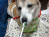 中国で大きな反日デモがありましたね。なんだかなぁ~イヤだね。プチ姉のお友達も、4月下旬から北京赴任の予定なんだって。だけど中国は、5月4日が戦後60周年の記念日だから、それが過ぎてからじゃないと危なくて、まだ中国へは行けないみたいよ。中国経済のためにも、こうやって日本企業が進出したり、たくさんのお金を援助しているのに、まだまだ、中国人は満足しないのかな?日本語学校の元教え子の中国人学生さん。中国での反日教育の影響で日本人に悪いイメージを持っていたそう。でも日本人と接しているうちに「そうでもないかも」って、思い直してくれたよ。こうやって日本人を、好きになってくれる中国人も沢山いるんだから反日デモをしている人達も、いつか日本人を好きになってくれるかな?それにしても、次のオリンピックって北京だよね?参加する日本選手が可哀想だから、北京を取りやめて、もう一度アテネでやったらどう~?そんなのダメ~?ところで我が家のプチ。日中関係悪化にも無関心で、のん気なワンライフを送っていますよ。そうそう昨夜は、久々に歯みがきしましたワン!♪プチの歯みがき、ピーナッツ味だワン♪ おいしいから、ペロペロしちゃうワンワン~