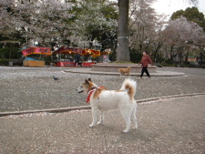 桜、まだ少し残ってるよ!今日は、プチ姉の通信制大学の放送授業も、ボランティアも、家庭教師もない日だったので、富士山をお祭りしている神社富士山総本宮の浅間大社へ、お散歩&花見に行ってきたよ。桜はもう、ほとんど散ってしまったけれど、少しだけ残ってた。それに地面にピンクの花びらが落ちてて、雪みたいだったよ。たくさん地面をクンクンしちゃった♪写真はスライドショーにしたから、お暇だったら見ていってね。プチのスライドショーのページはこちらにあるよ。「神社へ桜を見に行こう!」をクリックしてね→プチのスライドショーあのね、富士山は今日も見えないの。神社から見る富士山は、とってもキレイだから、皆に見せたかったなぁ~ 残念!