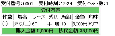 さて・・・昨日バナナの皮ネタを酔っぱらいながら適当に書いたら・・・思いのほか反応が・・・でもって・・・昨日の私の日記を読んだ上で・・・・これを読んでみてほしい。何気に面白かった。この日記何気にここ2~3日ネタが多いなあwと思うけれども・・・個人的にお勧めだ。見ておいても悪くないと思われる。でもってギャンブル・・・今日は閉店後に現調・・・・静岡まで入口付近までさくっとやってきて・・・今帰宅・・・・その間にサンマーを打ったんだけれども・・・やはりというか・・・掴まされ方が半端なかった・・・・こうボクサーのリーチの差のように・・・埋めがたい不利・有利ってあるんだなあと・・・それこそゴリアテに勝った、ダビデではないが・・・・不利な者は不利な者なりの工夫が必要。流れが無いままで何もしなければ・・・・埋められない差が生まれる・・・上がれないときは他人を上がらせるなだ。上がりに向かわない鳴きと・・・・ありえない切りだしで相手をほんろうすべし・・・で・・・どうにか自分の席を最悪の状態から上げたんだけれども・・・・相変わらず席替えで奪われ・・・またもや苦しい状況・・・それも工夫でどうにか巻き返したけれども・・・ずっと苦しい流れが続いている・・・・まあ・・・なんとか勝てたから良かったが・・・・でもって・・・仕事に行く途中、取引先の支店長様と戦ってやった。いつも対応が悪く、こちらを若造だと舐めているように見受けられたので・・・ぴしゃりとやってやったんだが・・・言い方が悪いと言われたので、それは主観の問題で、こちらの視点で見ればそちらのいい方が悪いと言ってやったら絶句していた。クレーム受ける立場だったら絶対に言えないからなあ・・・・いつかこう切り返せるシチュエーションが来ないかなあと到来を求めていたので非常にすっきりした。となんか戦う話が多い・・・さて・・・そういえばなんだが・・・・メールの方に後輩の予想を同じく受けている方から画像をいただいた。これが後輩の予想のままではないと思うんだが・・・それでも興味深い。このWIN5の買い方見事だよなあ・・・3点で1900K回収。メールの本文にもあったけれども・・・1000倍を1K買うのと10000倍を0.1K買うのは一緒なんだよな・・・私が決めた買い方も同じだ。1000倍も5000倍も回収を500Kに合わせれば変わらないのだ。まあ・・・しばらくは1000倍切りでと思っているが・・・・もう眠くて仕方がないので寝ます。上記の買い方って真髄だよな・・・・今週の後輩が何を選ぶか・・・何気にかなり興味深い・・・・IE・PC用自薦集http://plaza.rakuten.co.jp/puchihametu/34000↑IE・PC用自薦集(絞り込み)我が優秀な後輩君↑http://blog.livedoor.jp/longshotm/対価出した後輩の予想ページ↑http://doronuma2.blog83.fc2.com/後輩での一貫性勝負結果集http://plaza.rakuten.co.jp/puchihametu/15004↑後輩での一貫性勝負結果集