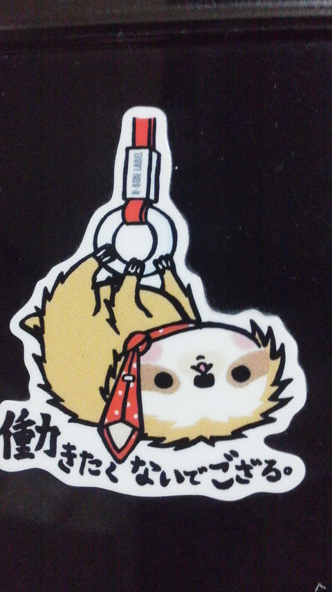 さて・・・相変わらず帰宅したら今5時とか・・・たまらないでござる。私の会社の携帯には暇井さんに貼られたこれが貼ってある。会社の携帯にだ。意思表示の仕方がいいと思うんだが・・・思いっきり見えるようにしてるのだが、会社の上役から突っ込まれたことはない。突っ込まれたら・・・・大きく胸を張りこう言おうと思っている。はたらきたくないでござる。と。意思表示なんだと意思を表示して分かりやすくて何が悪いと・・・ただ・・・こないだ、商品のクレームを受けているときに顧客の前でこの電話使っていたら・・・手で隠したけれども見られたようで・・・・火に油が注がれていた。そうだよなあ・・怒っている相手にこんなシール貼ってある電話使っていたら・・・おふざけになられているとしか思えないよなあ・・・・にしても・・・サンマーやってると・・・毎回配牌が悪い・・・・いつ見ても悪いねと言われた。・・・仕方がないじゃない、完全スロースターターなんだから・・・不利を押しのけて押しのけて徐々に上がっていくしかできない。勝負事不利だよなあ・・・最初の方で圧倒的差をつけられてしまう。今日も後半追い上げたけど・・・前半の2回戦飛び鳥と飛び・・・あがれないもんなあ・・・何しても・・・間に合わないし、掴むし・・・それを工夫で噛み合うまで変えるんだけれども・・・・それがなかなか来ないのと・・・たまにはスタートダッシュが決まってもいいと思うんだけど・・・なんでいつも最初悪いんだろうな・・毎回違う席に座っているのに・・・最初はずっと悪いを受け入れるしかないんだろうけれども・・・てなことで、スタートダッシュ30K負けから巻き返して7K負けに・・・まあ、結局負けてるんだけど・・・どうしようもないんだよなあ、最初の方。で・・・仕事に向かい運転中に電話していたら・・・タイーホされた・・・・・・昔高速で掴まって以来、掴まって無かったのになあ・・・・というか・・・携帯運転くらいしかやらない私のような善良なる市民を掴まえるなよなあと・・・もっと凶悪犯を逮捕しろと思えてきて許せない中枢が刺激された。あいつら一体なんのためにいるんだろうな。治安守れていないし・・・凶悪犯罪の抑止力にもたいしてなっていないし、不祥事だらけ。よくよく考えれば、もっとこう、抑止力になるような事に力を入れろよなと・・・だが・・・こんな珍しいレアケースが起きた時点で・・・変化の予兆としか思えない・・・というか思いたくない・・・なんかおふざけになられている事多いよなあ・・・そろそろ競馬で12週連続帯くらい当たって当然だと思えてならないんだが・・・気の所為なんだろうか・・・てことでいい時間なのでもう寝ます。朝早く起きたくないでござる。