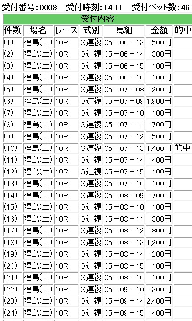 だけれども・・・今日はなんか嫌な予感がしなかったので・・・・やはり経験則が何かを私に告げているんだろうな。麻雀でもそうだけれども・・・自分が見た瞬間に感じる事柄というのは・・・起きる結果に忠実なのかもしれない。今日は後輩のレースがあと一つ。ここを取れば・・・小気味の良い勝ちになるので、どうにか連勝したいところだが・・・・どうだろうか?でも当たってもオッズ下がるよねぇ・・・・もう少しは望みすぎなのだろうか・・・・桜花賞Nスポ引き続き募集中です。2013年福島8R3連複200倍。福島10R後輩惜しのメイショウブシン単勝。さて・・・あと一つ取れば・・・十分なんだがどうか・・・明日も荒れてくれれば・・・・やはり雨なのか・・・要素は・・・IE・PC用自薦集http://plaza.rakuten.co.jp/puchihametu/34000↑IE・PC用自薦集(絞り込み)我が優秀な後輩君↑http://blog.livedoor.jp/longshotm/対価出した後輩の予想ページ↑http://doronuma2.blog83.fc2.com/後輩での一貫性勝負結果集http://plaza.rakuten.co.jp/puchihametu/15004↑後輩での一貫性勝負結果集