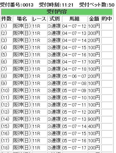 早い時間に買いすぎたなあ・・・後輩が推していた事もあり・・・・ちょっとオッズが合わなかったので・・・嫌な感じがしてBETを落としたんだよなあ・・・まあ・・・勝ったからいいか・・・明日も今のところは後輩次第だけれども・・・・ちょっと控え目かもしれない・・・にしても・・・3連単だと獲れないレースがおおいなあ・・・それだけ勝ちきるのは難しいんだろうな。やはり3連複を買うべきなのか・・・・あ・・・引き続きNスポ募集中です。2013年4月13日後輩推しのユキノアイオロスから3連複1200倍。なんとか連勝だけれども、自分のチェック欄にも結構いい事書いてある。まあ、ターゲット使っている人なら分かると思うけれども・・・そうじゃない人用にたまには画像アップN島ターゲット。Sは個人的に次走かなり熱いというやつ。基本はAか1しかつけない。Bとかもそうだけど、他と違うのはより注目ということ。ただ、購入時間見てもらうとわかるとおり・・・かなり早い段階で買った所為でオッズが美味しくなかったんだよなあ・・・なので控え目にして失敗。まあ、明日の後輩に変わらず期待だ。そして・・・Nスポ予想お待ちしております。IE・PC用自薦集http://plaza.rakuten.co.jp/puchihametu/34000↑IE・PC用自薦集(絞り込み)我が優秀な後輩君↑http://blog.livedoor.jp/longshotm/対価出した後輩の予想ページ↑http://doronuma2.blog83.fc2.com/後輩での一貫性勝負結果集http://plaza.rakuten.co.jp/puchihametu/15004↑後輩での一貫性勝負結果集