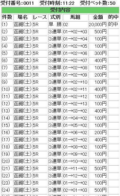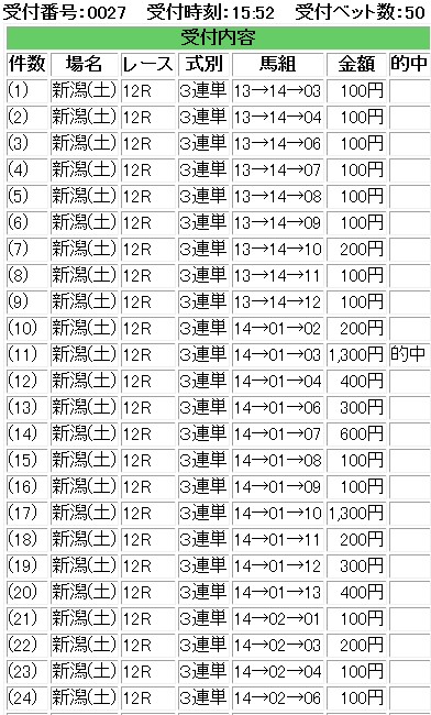 最終レースで的中してメンタル的には満足。まあまた来週です。Harukiさんとかぶったときはこの世の終わりだと思いましたが・・・無事でした。