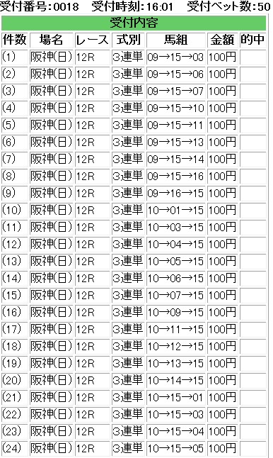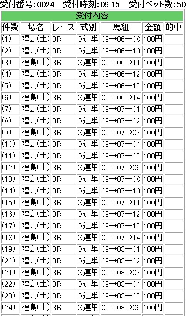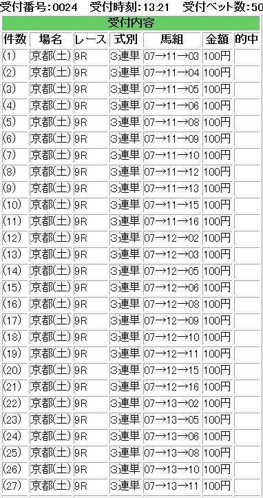さて・・・再度検証している・・・というのも・・・私のBETの仕方だと・・・・僅かな上澄み狙いだと偏りにやられる。たいやきの尻尾はくれてやれと相場格言で言うけれども・・・競馬だと拾っちゃ食当たりを起こすことになる。正直・・・福島も十分勝てると思っていたが・・・・実はこれ勝てるは勝てるんだが・・・・上澄み部分が僅かで・・・今週のように堅い方に拠ると・・・・結構目も当てられぬ惨劇になる。まあ・・・これくらいしか今週は当たっていないが・・・・福島ほぼリプレイ2つ。もう少し上ブレが起きてくれないとなあ・・・・・で・・・・何度も検証し・・・旨味のある部分だけを抽出しようとすると・・・・私の中でこんな条件が抽出された。東京・中山・新潟・小倉・札幌・函館は3単を買わない。福島・中京・京都・阪神は3単を買う。基本は2頭は消す。BETは上ブレ狙いの場合は必ず均一BETトリガミは悪なので、トリガミにならない最低オッズ以上を買う。相性が悪い勝負は徹底的に避ける。(四位・代替競馬・武幸四郎)軸の単勝オッズが2倍以上つかない場合は買わない。(特別レースで多頭数は別)過去の結果見ても1倍台は買うと負ける。特別レース以降を狙う。こんな簡単なルールでも・・・結構私の血肉が注ぎ込まれている。やはり・・・どう考えても、何度考えても・・・ギャンブラーは勝つことでしか生き残れない。しがみついてでも勝ち続けなければ・・・生き残れないのだ。まさに生き死にの問題。ギャンブルの生き残った感を望んでいるのだから・・・・生き残り続けなければならない。より効率のよいBETを求めなければ・・・・福島堅かったなあ・・・・さて・・・秋華賞に関しては・・・・四位騎手は何かの馬主に頼まれたんだろうか・・・・超Hペースを撒くっていって・・・ヌーヴォレコルトに被せて不利を与えて勝つ気なし・・・本命にそれやられると楽しくないなあ・・・馬の力は足りてないとは思わないのだが・・・・そう考えると・・・ヌーヴォレコルト本当に強いね。来週は菊花賞か・・・買いたい馬があまりいないが・・・・ゴールドアクターくらいかなあ・・・・もしくはショウナンラグーン。オッズ次第だけれども・・・まあ・・・ルールどおりに阪神始まるまでは大人しめだな・・・そう考えている・・・・来週も再度後輩の軸が来て荒れるパターンに一貫性勝負だな・・・IE・PC用自薦集http://plaza.rakuten.co.jp/puchihametu/34000↑IE・PC用自薦集(絞り込み)我が優秀な後輩君↑http://blog.livedoor.jp/longshotm/対価出した後輩の予想ページ↑http://doronuma2.blog83.fc2.com/後輩での一貫性勝負結果集http://plaza.rakuten.co.jp/puchihametu/15004↑後輩での一貫性勝負結果集Nの食べログhttp://tabelog.com/rvwr/001813979/↑Nの食べログ