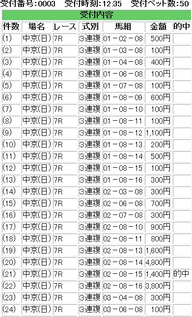 はずれを受け入れる覚悟でどうにか今週も生き残らせていただいた。オフ会で魅せれて良かったが・・・・後輩の推しレースでデム様ダートを嫌ったら・・・・降りて大失敗・・・・この世の終わりを体感したが・・・・・ これで心折れたら駄目だと理論に殉じたら・・・・一貫性が報われ、正の偏りへ・・・・神よ、もっと私を祝福しろ!!ビール後は飲んでよう・・・・やはり後輩、すげえね。2015年7月25日 中京2R後輩推してたけどデム様ダートなので単勝100K降りたらどうでもいい枠連ウマモフさんおめでとうございます。殉じれなかった自分に絶望するものの・・・・・2015年7月25日 函館4R 理論に殉じたダンツホーネットこれで生き残り・・・・後は・・・中京1鞍入魂で今日は終了後輩と心中を再度誓いたい。IE・PC用自薦集http://plaza.rakuten.co.jp/puchihametu/34000↑IE・PC用自薦集(絞り込み)我が優秀な後輩君↑http://blog.livedoor.jp/longshotm/対価出した後輩の予想ページ↑http://doronuma2.blog83.fc2.com/後輩での一貫性勝負結果集http://plaza.rakuten.co.jp/puchihametu/15004↑後輩での一貫性勝負結果集