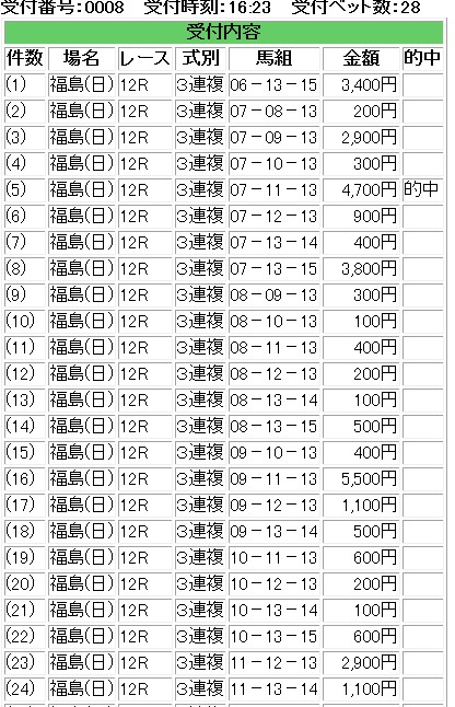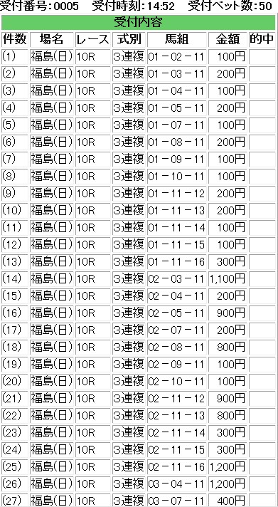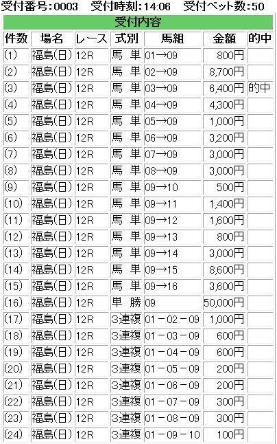 でも・・・逆パターンだったら目も当てられないよな・・・買い間違えでなんとかと・・・合成オッズで切ったぎりぎりのところが来た。流石後輩。一応・・・見つけ出した理論は間違っていないとこれで信じたいところだけれども・・・馬単の頭のオッズを完全に勘違いしていた・・・やはり馬単よりも単勝かもな・・・救われながらも・・・さて・・・また来週かな・・・・後輩に期待したい。全部気持ちよく当たるところが回収率を稼げるところだとは思うんだが・・・2015年7月5日 福島最終12Rリンガスヴィグラスさて・・・来週の後輩にこれまた期待したい。買い間違ったのに助かったのは一気に流れが来る予兆じゃないかと思いたいなあ・・・・IE・PC用自薦集http://plaza.rakuten.co.jp/puchihametu/34000↑IE・PC用自薦集(絞り込み)我が優秀な後輩君↑http://blog.livedoor.jp/longshotm/対価出した後輩の予想ページ↑http://doronuma2.blog83.fc2.com/後輩での一貫性勝負結果集http://plaza.rakuten.co.jp/puchihametu/15004↑後輩での一貫性勝負結果集Nの食べログhttp://tabelog.com/rvwr/001813979/↑Nの食べログ