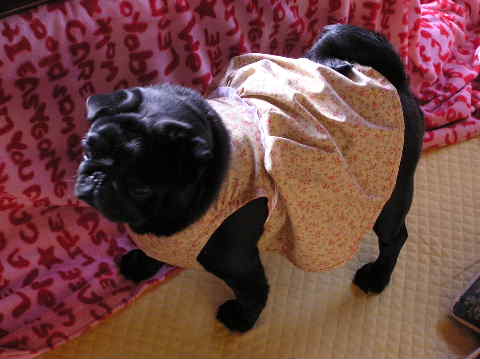今日は久しぶりにわんこ服の新作です。そろそろ暖かくなってきたので、ノースリーブのワンピース。ちょっとレースも使ってみました。 でも、まろんちゃん、ちょっと太ったのかなんだかぴちぴちに見えるんだけど・・・まあ、彼女は元もとがっしりしてたからなぁ~。でも、後ろ姿ってムチムチしてるんですよね~。最近、少し食事を減らしてるんだけれど、あまり効果はないみたいですが・・・ これはまろんです。張り裂けそうでしょう。でも、おなかの方はまだ余裕はあるんですけどね~。やっぱ、ダイエットかなあ? おすましくるみです。ちょっと顔が分かりづらいですが・・・ ゴエモン君は、相変わらず・・・でも、また、最近、心臓の調子が良くないみたい。口の中の色がなんだか少し黒ずんできたように見える・・・これって、心臓の働きが悪くて貧血気味になったときになるんですって。今のところは、以前よりも元気に歩き回ったりしているので、イイかなあと思うんだけれど、ライムがしつこくゴエモンに仕掛けていくんですよね。最近は、ゴエモンも、我慢できなくなったのか、ライムを噛みつかんばかりに威嚇しています。それでも、ライムはひるまず、突進していくので、ゴエモンは、少々、嫌気がさしてる様子。 「俺にかまうな」みたいな感じなんですよね。ゆっくり、寝たいんでしょうね。ライムからしてみれば、「元気そうじゃん、俺と遊ぼうぜ!」みたいな感じなんですよね。