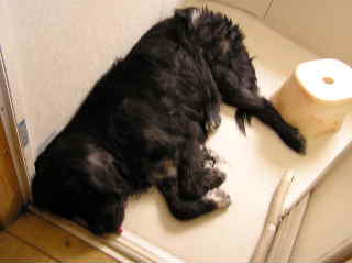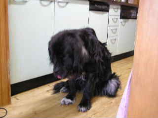 やってくれました・・・ゴエモン君。最近、おかしな事があったんです。ここ数日間、キッチンにおいていたはずの台ふきが毎日のように一枚ずつなくなってるんです。確かに置いたのに、何処を探してもないんです。昨日の朝も、おろしたての台ふきがない・・・どんなに探しても見つからないんです。どっかに落としたのかなあ?と、考えているときに、何となく視線を感じて、はっと振り向いてみると、ゴエモンが、妙な顔して私を見つめてるんですね。フッとイヤ~な予感・・・もしかして・・・ゴエモン君、またやっちゃったの?台ふき、食べちゃった~?でも、でも、キッチンの高さって80センチはあるんよね。ゴエモン君、いったいどうやって食べちゃったんだろう?確実に、キッチンの上に置いてたんだよ。あのなが~い舌で、とったのかなあ?足が悪いから、後ろ足で立つって事は、到底無理なんだよね。隠しカメラでも設置しとかないとダメかなあ?(笑で、で、昨日の夜と、今朝のうん○ちゃんに、なんと台ふきの残骸が・・・・やっぱり彼、食べてたんです。と言うことは、後二枚分、彼のおなかの中に収まってるって事?そのうち出てくるんだろうか?彼は最近、夜と昼が反対になっちゃってる様子。夜中に私たちが寝静まって、怒る人がいなくなると、暗闇の中を、ゴソゴソとあれこれ物色している見たいなんです。しかも、二時間おきに、トイレだと行って私を起こしに来る・・・確かに家の中でされるよりはいいけれど、完璧にここのところ寝不足・・・今日も朝起きてきたら、旦那愛用のファインテンの腕輪が紛失・・・テーブルの上に置いてあったんだけれど・・・ダイニングテーブルだから、これもかなり高さはあるんだけどなあ・・・やっぱり、食べちゃったのかなあ?同じとこに置いてあった、糸切りハサミが、下に落ちてたしなぁ??これも、うん○と一緒に出てきちゃったりして・・・