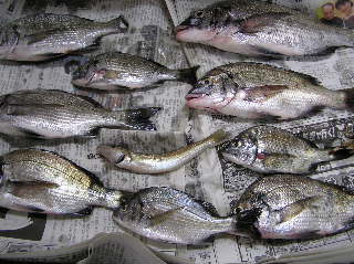 帰ってきました。お兄ちゃん。少しやせたかな?でも、髪の毛伸ばし放題で、ボサボサ状態。やっぱり大学生らしくなっていました。そして、やっぱり「迎えにこい」と、早速使われてしまいました。わんこたちはというと・・・やっぱりゴエモンが一番喜んでいたかな。そしてレモンも抱っこしてもらおうと一生懸命でした。そして、抱っこしてもらうと、満足げにしていました。さてさて、パグさんたちは・・・案外そっけなかったのです。「あ、帰ってきたの」とばかりにちらっと行ってみて、そ知らぬ顔です。あららって感じです。まあ、でも忘れて無かったのは確か。だって、ちろって見て別段吠えもしなかったし、ああ~いたの?見たいな感じ。それぞれのわんこによって、反応がちがって面白かったですね。あ、旦那さん、がんばって釣ってきました。九州では、チヌ鯛、関東方面では、クロダイといいますが、中小、あわせて9匹とキス一匹、おまけは小さな渡り蟹。でも、家族4人で、おすしを作って食べたけど、おなかいっぱいになれました。お兄ちゃん、食べ過ぎた~といって、満足していました。旦那さん、うれしかったみたいです。昨日の釣果です。久しぶりに兄ちゃんと会えて、弟くん、とってもうれしそうでした。でも、一人増えるとやっぱり大変です。ふ~。