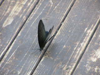 今年の夏は・・・暑いですね。ここのところ、下の子は、一日練習なので、もう顔が真っ黒に日焼けしています。ちゃんと帽子をかぶってるのにね。今日は、兄ちゃんが帰ってくるので、旦那さん、朝早くから釣りに出かけました。今頃一生懸命つっているはず・・・釣れたかなあ・・・?やっぱりおいしい魚を食べさせたいんだって。弟君も「今日、兄ちゃん帰ってくるんよね!」と確認して出かけました。楽しみにしているようです。果たしてどんな格好で帰ってくるやら・・・でも、今年の夏はなんか変。毎年たくさんクマゼミとかが鳴くのにほとんどせみがいません。子供たちも蝉取りしているけれど、一匹も捕まらないよ~といってました。そして、今朝、なんと「ひぐらし」が、鳴いていたんです。例年なら、お盆過ぎくらいから、なき始めるのですが、今年は異様に早いみたいです。そして、最近、朝方、いつも蝶が我が家のデッキに訪れます。何をしているのかはわかりませんが・・・こんな感じで、しばらくとまってるんです。しかも多いときでは、2,3羽とまってたりするの。不思議です。