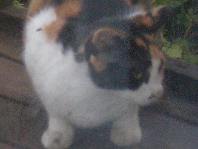 ハイ、皆さん、お待たせしました。我が家のデッキを通り道に使っているのこさんのお顔が撮れました。まだ小さいみたいです。三毛さんだから女の子かな?これで男の子だったらすごいよなあ~。ってわけないか!! ガラス越しにしかたれないので光ってますが・・・そういえば、またもや我が家の近くに猿が出没し始めました。今度は猿の写真・・・がんばってみようかな?木曜日に息子がシフォンの散歩へ行ったときに遭遇したとか・・・シフォンさん、完全に臨戦態勢だったようです。
