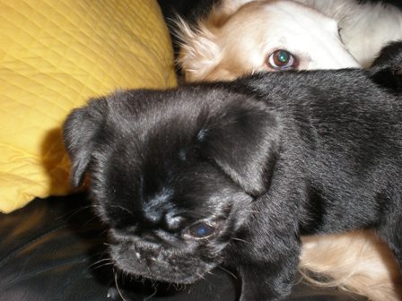 おはようございます。今日もメロンの話題ですが・・・最近、メロンはシフォンに遊んでもらっています。というか、かなり強引に遊んでいるようですが・・・でも、シフォン・・・・・かなり我慢して遊んであげています。何しろ、うちのパグズは、いちご以外は、全くシフォンを無視しているような状態ですから・・・やっぱりいちごの子ども・・・特におそれることもなく、というか怖いもの知らずで果敢に仕掛けていきますから・・・では、その様子を動画でどうぞ・・・シフォンとメロンシフォンとメロン2そして遊び疲れてメロンは・・・・では爆睡中のメロンのアップを・・・
