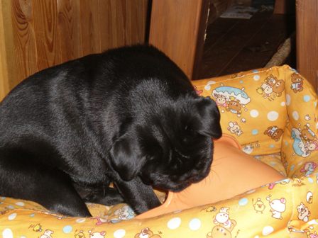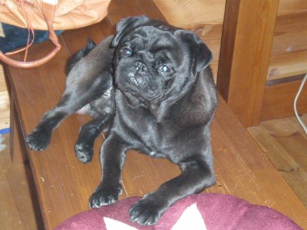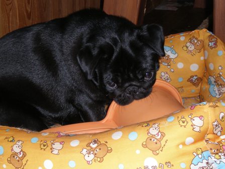 毎日暑いですね。今日は特に蒸し暑くって・・・・パグズもシフォンもダウン状態です。この間ダウニー買いました。香りはクリーンフリーズ・・・甘い香りではないけれど、加齢臭とかわんこの臭いにはいいかも。でも、旦那さん、全く加齢臭の自覚がないから「なんでこんなもん買うんだ!?無駄じゃないか?」なんておっしゃる。やっぱりはっきり言った方がいいのかな?かなりむかっときた私です。でも、パグのこの顔見ると・・・そんなこんなをすっかり忘れちゃいます。ほんと、この顔、たまりません。