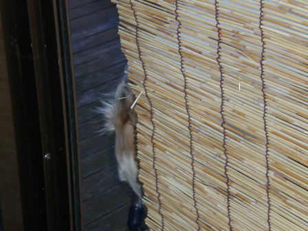 今日は、朝から雨・・・昨日よりは蒸し暑くはないけれど・・・うっとうしい朝です。そこでメロンさん。何見てるの?そんなところで・・・必死に眺めてます。「お母さん、あそこになんかあるよ!」「やっぱり、何かあるよ!」と、ソファーの橋によじ登って、必死に訴えるメロンさんでした。結局なんだったんだろ?