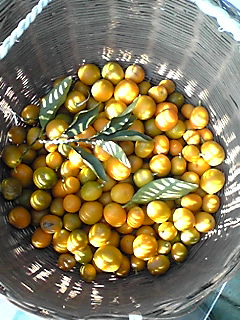 実家の庭の金柑の樹に成っていた実です。頂いてきました。