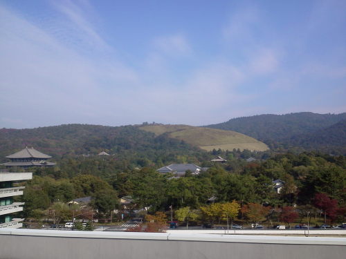 有給をとり奈良マラソン、最後の追い込みで奈良公園方面へ走りました。っていうか県庁の限定何食かの大和地鶏の親子丼を食べてみたかったのです。14時までに入らなくては~。 しかし暑かった。 奈良は平城宮跡の遠足の子供たちや、駅前は正倉院展に行く人やバスでいっぱいでした。県庁も敷居が高いイメージがありましたが、結構普通の人も入っていきます。受付の方が、奈良時代の服装でびっくり。エレベーターも「食堂 6階」と親切な表示がありました。 食堂はよく病院とかにありそうな感じです。でも結構メニュー多いのでは?ガイジンさんもいた。あまり吟味できず、とりあえず一番人気の寧楽という700円の定食にした。家庭料理の感じで煮物もお味噌汁も鶏肉のフライもすごくおいしかった。あの辺って観光客相手の店しかないからいいかも。平日昼なら。それと景色もいいのでびっくりした。 景色といえば屋上に行ってびっくり。こんな若草山や東大寺を間近で感じられるとは・・。すごく気持ちのいい場所でした。 機嫌良くなり、久々に高畑の豪邸街を走り、きたまちを走り、鴻池を通り、木津の州見台から高の原へ。「もっと走ろう」って自然と思えて嬉しかった。途中で、田川のお店の前を通り、おっちゃんに会釈したら「ごくろうさん」と言ってもらえた。嬉しかった。