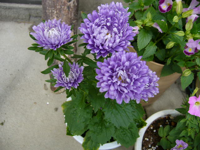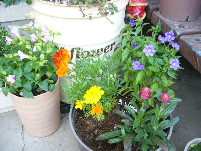名前が解らないけど 菊の一種かな、、ミニひまわり 葉っぱは 虫食いにあってたんで切っちゃいました。先日の組み合わせが悪かったので 新しく後ろにエンジェルラベンダーを植えましたが、、混雑してます 天使のワルツの種まき ノースポールとチェリセージと日々草