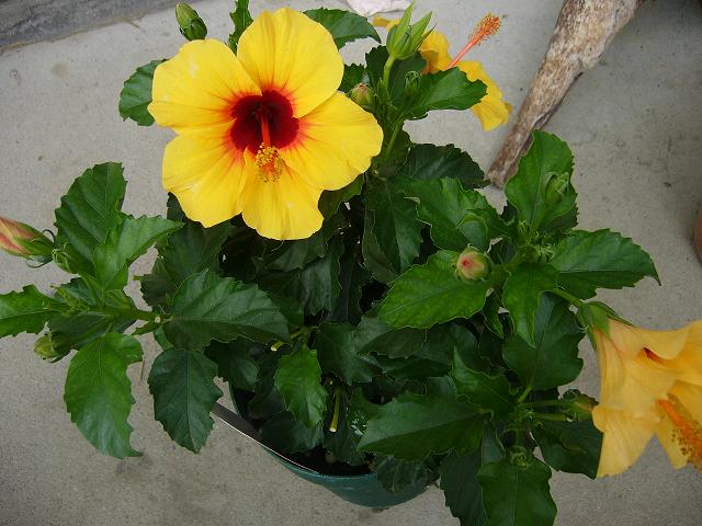 今日も暑い1日でした。暑くて子供にプールを作ったけれど私は汗だくで 作ってました。毎年暑い思いしながら やっているのに子供は 『あーしろ、こーしろ』と言うだけなんで 暑さも加わって はらただしくなります。実家に帰った時、花屋の前を通って かわいいので 妹といっしょの花を買いました。妹は母に、、、、いい感じで咲いていたので写真にとりました。あと、お昼過ぎに へちまが伸びてしまったのでそれ用のネットとパンジーやビオラの種を買ってきました。かわった品種って高いもんで 種4種と土で2000円打ち間違いじゃないかと レシートをじっくりみてしまいました。明日にでも 写真を載せよう。。。 500円なんて安いハイビスカス