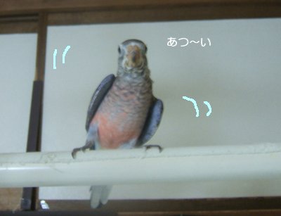 梅雨で蒸し暑い関西・・・昨晩も蒸し暑い一日でした。。放鳥して最初に飛び回ってるさくらも体も暖まりすぎて羽も開いてます。暑くて羽が開いたのは初めてだね。すでに部屋の中は28度超えてるもんね~~~ビュンビュン天井を回っていると細かい羽も飛び散るので困るけど私としてはファンが回ってるようで涼しくてよいのですけどね( ̄∇ ̄*)リルフィー父さんと一緒さくら、ふがふが怒ってます♪リルリルは無関心~~(^ー^)まだ体は小さいけど、成長したらパパみたくガッチリするかな♪ん~~でも、さくらのムチムチボデーは想像したくないような・・・あいかわらずべっぴん(美人)さんな姉さんミミ恋する乙女は美しい(オカメにだけど)