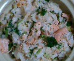 材料は生鮭・白米・大根・人参(入れてはずなんだけど見当たらないねこの写真)・サツマイモ・ピーマン・苗豆・パセリ