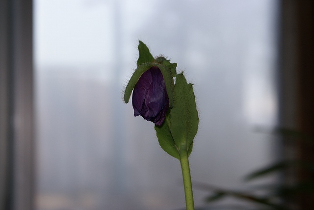 今朝の三都・松本地方は、予想最低気温を下回り氷点下の朝を迎え郊外は霜で真っ白。昨年大晦日に部屋に取り込んで育ててきた、ヒマラヤの青いケシ、メコノプシス・グランディスとメコノプシス・ベトニキフォリヤのうちグランディスの一株が一足早く開花を始めたので紹介します。昨年は、猛暑の為自然状態で育てた所蕾は昇ったものの咲くことなく終わってしまい、その後の猛暑で苗も、株も全滅の憂き目に会ってしまった。昨年は何処も調子は良くなかったようで・・・大鹿村でもかなり減ってしまったようだ。今年は昨年の二の舞を避けるため、一昨年同様の育て方を採用開花に漕ぎ着けた。昨日から殻が割れ始めて・・・今朝6時の状況です。今年のグランディスは赤味が強い感じで、少し温度を下げ赤味を抜く努力をしたのですが・・・。ヒヤシンスの青に負けてる。