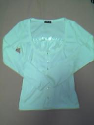 今日は家PCからの更新なり~前にファッション ジュエリーeshoppingで買ったカットソーがおとつい届きました。 届くのめっちゃ早かったですこれ、勝手にニットっぽい素材やと思い込んでたんですけど、実際見てみるとカットソーって感じで、サラっとしてて着やすいです胸下のところがキュっと絞られたようなデザインになってて、ウエスト周りが細身でスタイル良く見えますよ~。着るとこんな感じ 胸元のシフォンも思ってたほど安っぽくなくてカワイイですただ、胸の小さいあたしにとってはちょっとブカっとするかなぁ~って感じはあります。苦笑でも逆に胸を大きく見せてくれる効果もあるカモ送料込み¥2,500でこのデキはかなり満足ですボタンもけっこうカワイイんですよ~。ホワイトならまだありますオススメです