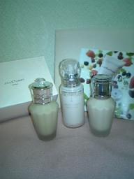 ふぅ~今日も医療事務の勉強に行ってきやした~つっかれた。。。ってか、ホンマ昼ごはん食べてからがめっちゃネムくて途中ちょっと寝かけてたしね。苦笑で、9/14の会社帰りにジルのリキッドファンデキットをGETしてきました14日が発売日やったんですけど、予約してなかったし買えるかなぁ~って思いながら行ったんですけど、無事GETできましたってか、BAさんの服カワイすぎ~たぶんアレってジルの洋服なんでしょうね。黒のワンピでめちゃカワイかったです今回はちゃんとショップに行って買ったんで、BAさんに色を見てもらって購入できました。目から下の化粧を落として実際に下地とファンデをつけてもらいましたジルのコスメって、全部イイ香りがして癒されますねぇ~“自然な仕上がりで”ってお願いしたので、ファンデは103のヌード、下地は01のナチュラルに決定。(写真の左のボトルがファンデで、右のが下地です) あ、ちなみに今回のキットは新発売のリキッドファンデ+コントロールカラーorルースパウダーに、美容液のミニサイズとコットンがセットになったものですあたしはルースパウダーは持ってるのでコントロールカラーを選択しました。まだどれも使い始めてないけど、BAさんにつけてもらった感じはすごいヨカッタですよセットになってる美容液も、実際に使ってもらったんですけど肌が柔らかくなってイイ感じ。化粧水の前に使う柔軟美容液だそうです。ってか、ジルって初めて行ったときはメンバーズカードなんてなかったのに、今回行ったらできててちょっとビックリ。笑まぁコスメショップはたいがいメンバーズカードあるけどね初回は仮のカードで、それから3ヶ月以内にまた買い物しに行ったら、正式なメンバーズカードと交換って感じらしいです10/5に新しいスキンケアアイテムが発売されるみたいなんで、きっとまた買いに行くと思われます。笑アイクリーム、リップバーム、ハンドクリームが新しくできるんですって~アイクリームは見た目もカワイイし使ってみたいなぁ~。詳しくはジルのHPへこちら♪人気blogランキングへ♪