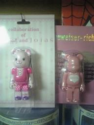 少~し前にお話していたCancamブランドがコラボした限定ベアブリック覚えてますか伊勢丹と各ブランドのショップで限定販売されたものです。伊勢丹HPで先行販売すると知ってから、“絶対GETするぞぉ~”と意気込んでたんですけど、なんと先行販売初日に出遅れてしまい。。。。。気づいたのが初日の夕方頃やったんです。とりあえず急いでHPを見てみると、アプワイザーリッシェとジョイアスのは残ってたんですさすがに数量の少なかったリティラのは完売しちゃってたんですけど。。。(なぜかリティラのだけ、他のより販売個数が少なかったんですよね。)で、とりあえずアプワイザーとジョイアスのはGETすることができましたで、こうなったらリティラのも買って3コ揃えたいなぁ~と思ったんで調べてみたら、その1週間後ぐらいにリティラの各ショップ&オンラインショップでも限定販売されるってことがわかって、当日、オンラインショップで格闘したんですけど、ものの数分で即完売。。。もちろん再入荷されることもなく。。。。。。。。。。でもショップに行く時間もなくて。(ってかショップもきっと即完売やったでしょうね)まぁ誰かに売るワケでもないし、2つGETできただけでもヨカッタかなと諦めました アプワイザーのは、なんでこんなに地味なのだ。。。ただのピンクにロゴが入っただけの。。。苦笑でも、一応ロゴの部分はハートのネックレスになってるんですけどね。ジョイアスのは、ちゃんと顔もあって服も凝っててカワイイです前にUSJで買ったスパイダーマンベアブリックと並べて飾ってまーす 兄が羨ましがってるこの3体のベアブリックちゃん達笑ぜったいやるもんかぁ~ёランキングへё