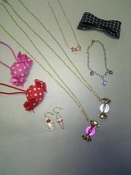 今日は立て続けに商品到着のご紹介ナリパリスキッズ-原宿のアクセ屋さんの商品が日曜日に届きましたメール便やったんでいつ届くかなぁ~と思ってたんですけど、発送されてから3日で届いて早かったです。 パリスさんのアクセはいつも届くたびにウレシイ気分になります笑まとめ買いしてて色んなのがいっぱい入ってるから余計かな。。。今回一番楽しみにしてたキャンディーネックレス ウマく撮れなかったんですけど・・・めちゃカワイイですよんストーンが意外とキラキラしてて、ぜったい¥315には見えませんキャンディーの大きさは想像より少し小さめやったんですけど、あたしぐらいの年齢やとコレぐらいがちょうどイイかなと。。。苦笑チェーンの長さはアジャスターで調整できます。着用写真撮ったらまた載せますねピンクゴールドのリボンネックレスもカワイイ 今回購入したのは左のネックレスですよ。前に同じくパリスさんで購入したリボンアクセと並べてみましたチェーンがなんか滑らかでスキです。笑これも¥315には見えないですねぇ~。キラキラハート付きのプレスレット。 とにかくストーンがキラキラですオモチャっぽいといえばそうなんですけど、でもこの値段でここまでキラキラしてるのってあんまりナイと思います。シンプルで使いやすそうですジャスターがついてないので長さが調節できないのが残念ですが。。。あたしは無理矢理チェーンの部分にホックを留めて調節してますスイーツピアスはチャームだけ外して、ケータイに着けました わ、わかりにく。。。。。ストラップにつけてから写真撮っちゃったので、こんなことになってしまって。。。でもオモシロイでしょ。鏡に映してそのままパシャっと撮っちゃいました前に買ったクマちゃんストラップと一緒に着けてまーすってか、今ストラップがゴチャゴチャついてて、かなりやかましい状態になってます。苦笑もらったモノとか気に入ったモノってなかなか外せないんですキャンディーポニーとリボンバレッタ リボンバレッタはカワイイんですけど、髪の量が多いあたしにはちょいとキツめでした。苦笑ハーフアップでもちょいとキツイう~ん。。。。。でもどうにかして使います・・・・・・・・・・って、ちょっと待ったぁ~っっあたしも気づくの遅すぎやけど・・・キャンディーポニーの色が違うがなっ赤い方あたしが注文したのはホワイト×赤ドットやのに、届いたのはレッド×白ドットです。。。苦笑丸1日気づかんかったってことで、今朝さっそくショップにメールで連絡HPではもうホワイト×赤ドットは売り切れになってるんで、在庫あるんかなぁ~って思ったんですけど・・・大丈夫でした『ご迷惑おかけしまして申し訳ありませんでした。直ちに正しい商品をお送りさせていただきます』と、パリスさん。パリスさんでこんな間違いがあったのは初めてのことです。でもね、『これ以上ご迷惑をおかけすることはできませんので、お手元の商品は返送いただく必要はございません。もしよろしければお使いください。』とうっひょ~商品間違いで逆にラッキー笑確かに、交換ってなっても返送するの面倒やなぁ~って思ってたんですよね。ヤッタね、キャンディーポニー1つ余分にGETだゼィ2/28追記キャンディーポニーのホワイト×赤ドットが届きました速達メール便で送ってくださったので早かったです。 3つ並べるとカワイさ倍増~◇ランキングへ◇