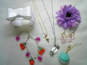 少し前に届いてたんですが、パリスキッズ-原宿のアクセ屋さんで注文してた商品のご紹介です 今回は全部で7点。 ガーベラのコサージュは、¥525とパリスさんにしてはちょっと高いんですけど、色がすごいキレイですこれからカゴバッグに着けて使おうと思ってます。ナンダカンダでまた買っちゃったイヤリング。笑夏っぽい涼しげな色のビーズがカワイイですジャラジャラしててもギャルっぽい感じじゃないので、大人っぽくてイイですよ。 マカロンストラップは前にベリーピンクを買ってるので、どんな感じかだいたいわかってたんですけど、色がキレイでカワイイこれはチェーンに付け替えてネックレスにしようかなぁ~と思ってますジェラートネックレスは、よ~く見るとけっこうデザインが凝ってます。写真ではわかりにくいんですけど、コーンの部分に小さい3色のキラキラストーンが付いてるんです前に買ったダブルアイスネックレスと同じぐらいの大きさなんですけど、こっちは立体感があるので、ホンモノに近い感じがイイですね~。 キャンディーネックレスは限定のシルバーバージョン。これで4色目です。。。笑でもけっこう最近よく着けてるので、色チで持ってると便利なんです フルーツブレスレットは、さっそくバッグに付けて使ってます。ブレスレットとしてもカワイイんですけど、ちょっとジャマっぽいのでバッグチャームの方がカワイイかなと。。。カゴバッグに付けた方がカワイイかな リボンバングル(ホワイト)はちょっとサイズが大きめでした 腕にはめるときはちょっとキツイかなって感じなんですけど、いざ着けるとけっこうブカブカして、落ちないか心配になりますね。。。苦笑リボンは立体的でかなりカワイイんですけど・・・ちょっと残念 ∀ランキングへ∀