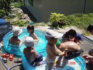 今日はママ友宅で『焼きそばパーティー』をしました。なんせ夏休みで子供達は暇~!少し田舎の方の友達の家で遊ぶ事になりました。集まったのは8組の親子。0歳児~小学校2年生の子まで皆で22人(◎。◎゛)メインは長男の同級生です。もう朝から暑くて暑くて!来た子から水遊びをしてました。男の子はパンツか海水パンツをはいて入っていたけど、女の子はなんと皆裸でした。(水着も着替えもなかったからみたい)う~ん、裸でいられるなんて…ちなみにプールの水は山水だったので、すごく冷たかったです。親はただ見守るだけ。ジリジリ太陽の下暑かったぁ~。お昼はお待ちかね『焼きそば~』と言っても私は何もしなかった~。ただ頂いただけでした。とっても美味しかったぁ~。ケチャップも少し入れたそうで…今度試してみよ~。年少さんはちゃんと一列に並んで、「頂きます」の長い挨拶をして食べてました。なんだ~家より行儀いいじゃんf^_^;次男も行ったんですが、あちこち走り回って、ゆっくり食べてられませんでした(:_;)その後は…なんとスイカ割り~~!年少さんは初めての子ばかりで、目隠しのタオルを取ろうとしてる子がいました。小さい子の順にしたら、長男は最後から三番目でした。長男の前に少しスイカ割られてしまったんですが、やる気マンマンの長男は、シートを押さえてある木を思いっきり叩いて、物凄く不満げでした。「もう一回やる!!」と意気込んでやったんですが……観客席側を思いっきりバーン!!残念でしたぁ~。またまた悔しがって、「今度家でやるでスイカ買ってきて~~」だって。とにかく負けず嫌いな長男です。そんなこんなで夕方になり、お帰りの時間。我が家の子達は睡魔が襲ってきて、帰りの車の中で爆睡でした。母子共に楽しくて思い出に残る一日でした。とっても楽しかったです(*⌒▽⌒*)