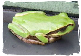 カエル嫌いな人ゴメンなさい見ないでくださいm(__)m朝、通勤のために車に乗ろうとしたら・・・・ドアの上に、カエルが居たカエルといえば、子供の頃によく父が「おみやげ~」っと持って帰ってきてくれていたので嫌いではありません・・・が、大人になった今では触れません(^^ゞということで、カエルさんを乗せたまま出勤お母さん、どこに連れて行くのですか?という目で、運転席を見つめてくるのでどこか好きな所で降りてね~っとテレパシーを送りつつ、運転(~_~;)職場に行くまでの道すがらは、ほとんど山道なので気の向いたところで、下車してくれる?っと思ったのですが、途中「ヘビさん」が出たのがカエルさんにも見えたのか?一度も下車せずに、一緒に出社してくれました(^^ゞ職場も自然が豊かな場所にありますので(要するに田舎なのですが・・・)そのうちにどこかに行ってくれると思ったら雨にも負けず、風にも負けず私の退勤時間まで、ジット待っていてくれました(>_
